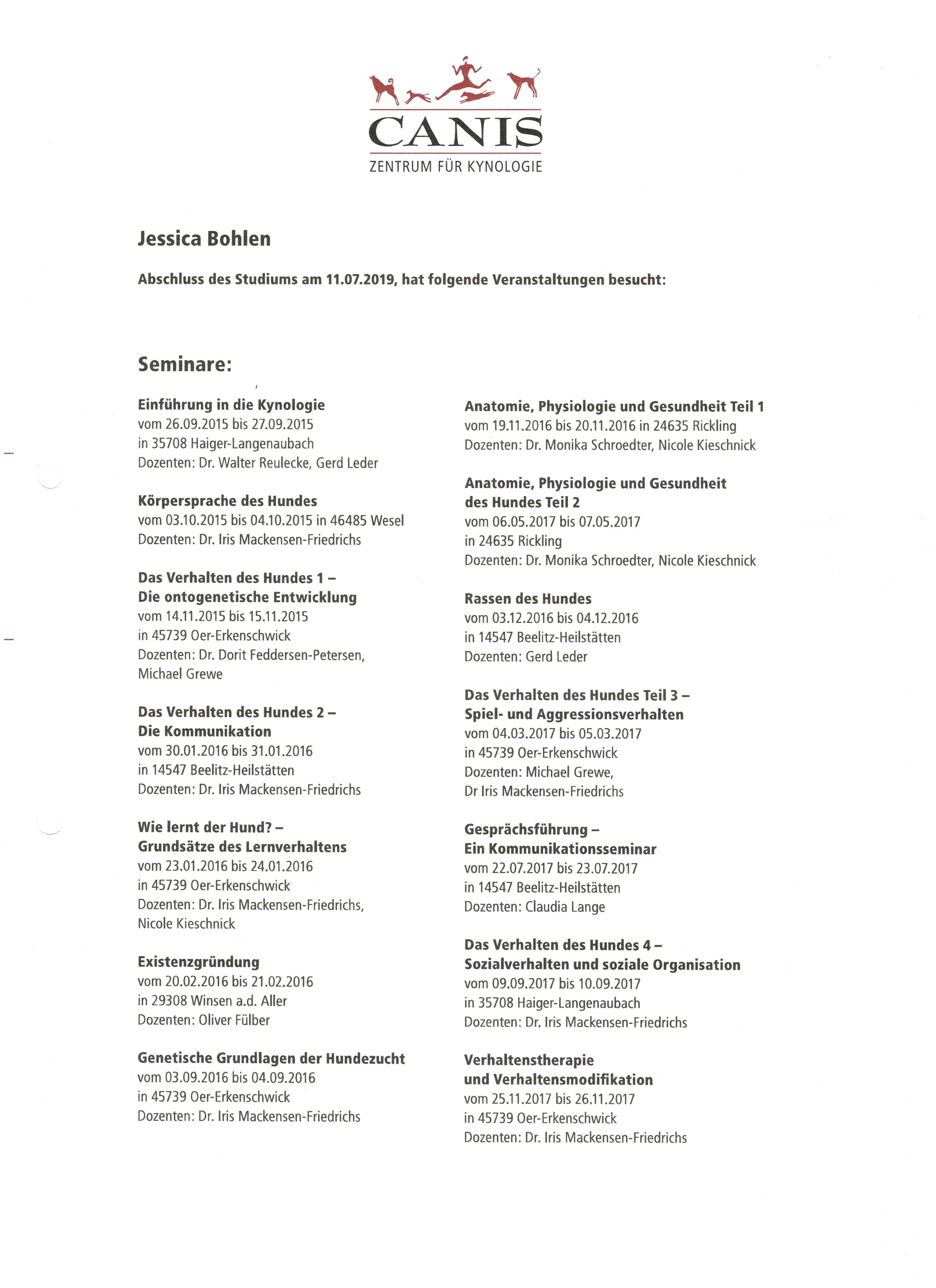 Canis Zertifikat und Inhalte