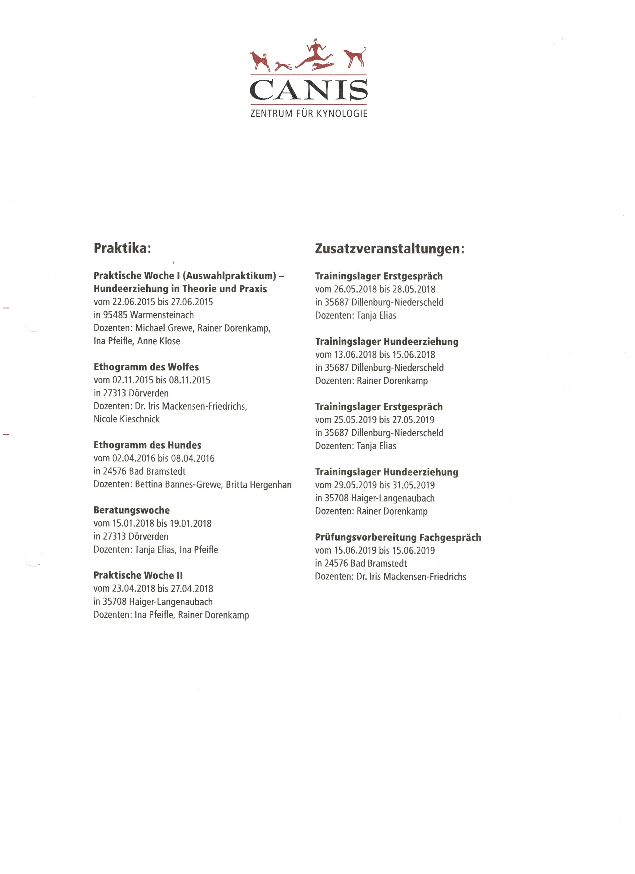Canis Zertifikat und Inhalte